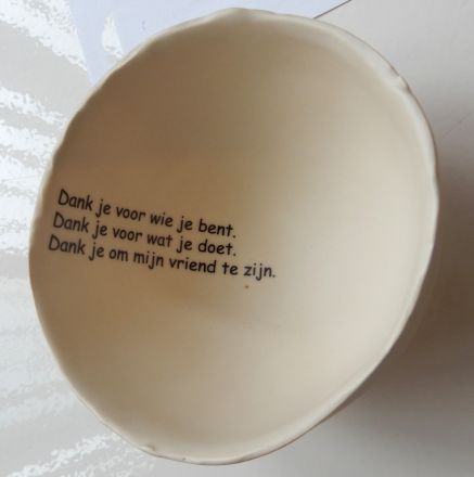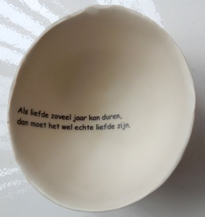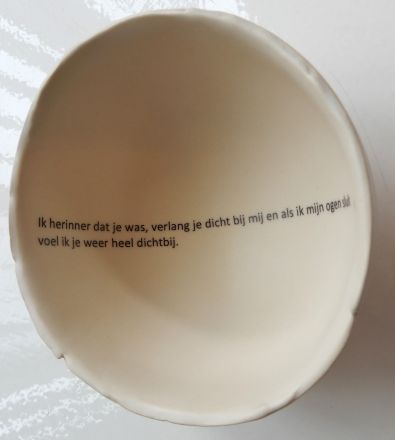 In samenwerking met Elke Bon maakt Jacqueline keramieken kommetjes. Elke Bon schrijft daarin teksten over liefde, kiezen en verliezen. Maar ook over de kleine gelukjes in het leven, zoals een dag in het park en thuiskomen.